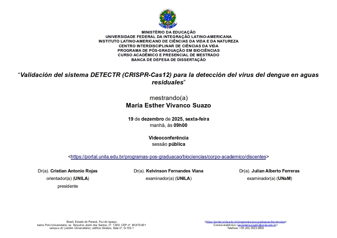 | 04/12/2025 | Defesa de dissertação - Mestrado em Biociências |