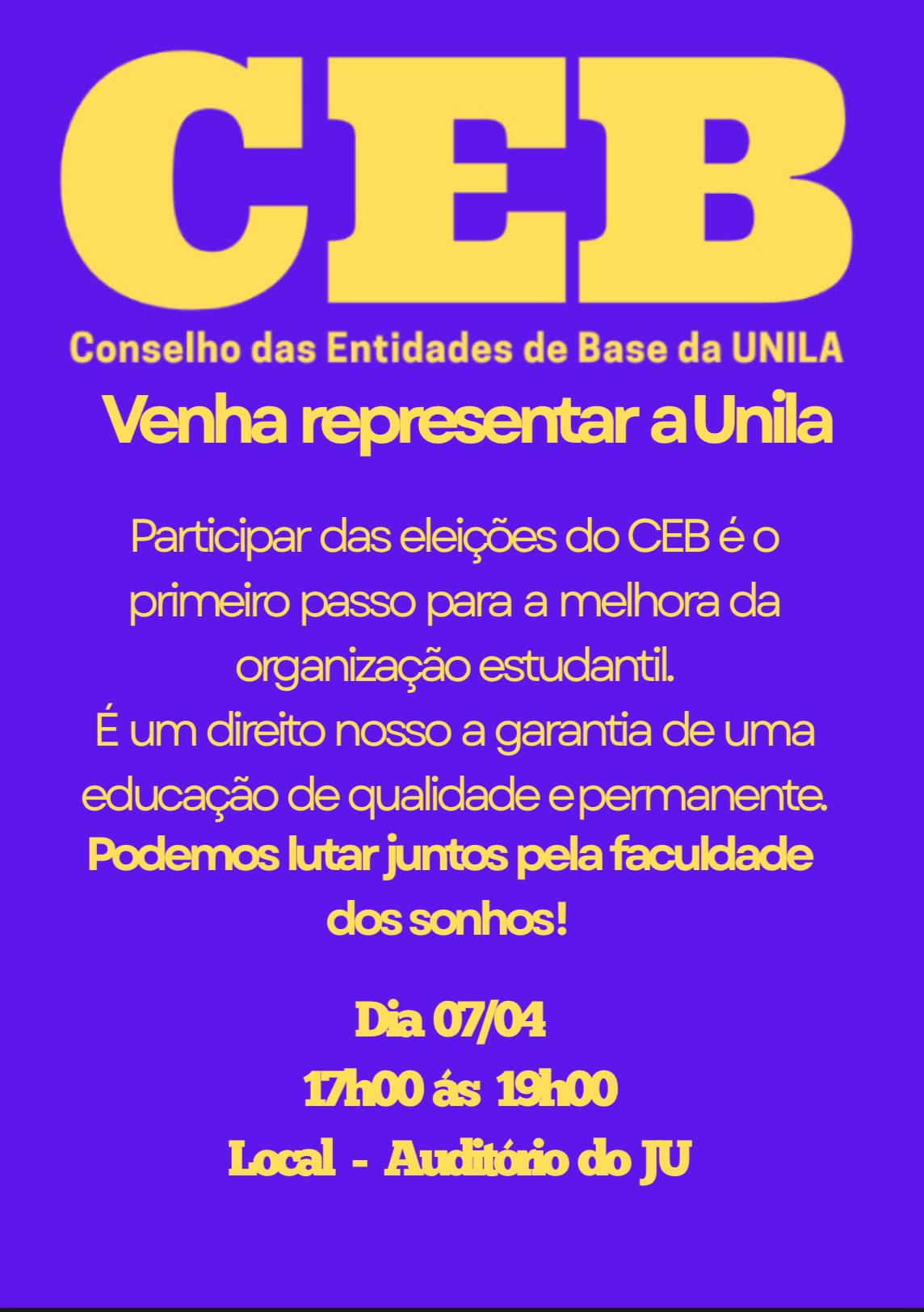 - Conselho das Entidades de Base (CEB) da UNILA convida a participar de eleições.