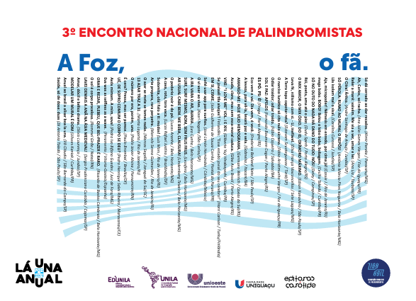 O evento será realizado na Faculdade UNIGUAÇU Foz e conta com apoio institucional da EDUNILA. A programação tem início no dia 27, às 8h08, com mesas de debate sobre literatura palindrômica, tradução, ensino e teoria, com participação de instituições como UNILA, Unespar, Mackenzie e UFRJ.