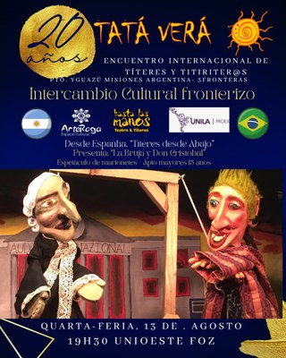 - UNILA traz companhia espanhola de teatro de marionetes para apresentação em Foz do Iguaçu. Espetáculo "La Bruja y Don Cristóbal" será realizado no dia 13 de agosto.