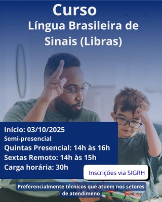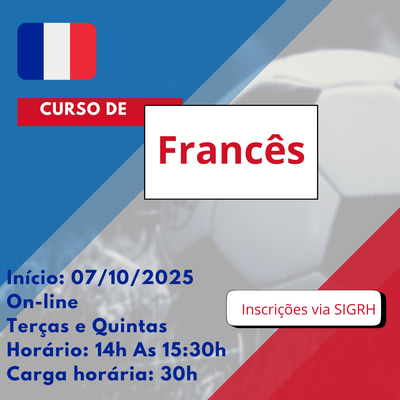 - Os cursos de Francês (online) e de Língua Brasileira de Sinais (semipresencial) são destinados a servidores. Ambos têm carga horária de 30 horas.