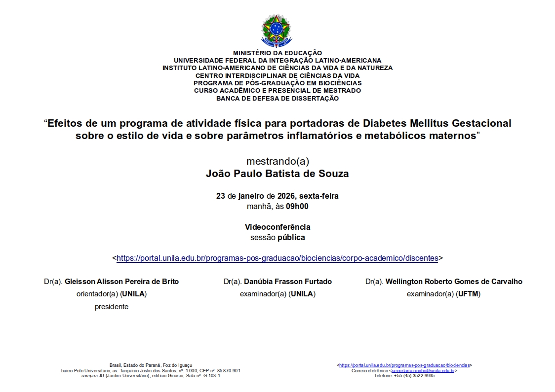 - https://portal.unila.edu.br/eventos/defesa-de-dissertacao-mestrado-em-biociencias-23