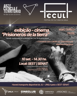Como parte da programação, será exibida a versão restaurada de "Prisioneros de la Tierra" (1939, Mario Soffici), no dia 10 de setembro, das 14h30 às 17h30, no Auditório Hermenegildo Francisco Gasparín (SEST/SENAT – R. Rufino Vilhordo, 155, Parque Pres. II, Foz do Iguaçu).