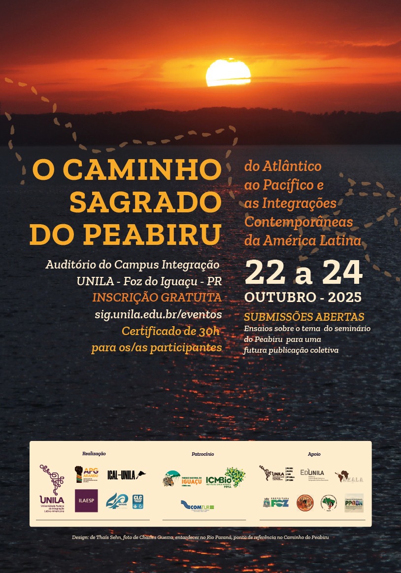 - Seminário “O Caminho Sagrado do Peabiru – do Atlântico ao Pacífico e as Integrações Contemporâneas da América Latina” será realizado entre os dias 22 e 24 de outubro, no Auditório Lélia Gonzalez, e reunirá pesquisadores, povos tradicionais e movimentos sociais.