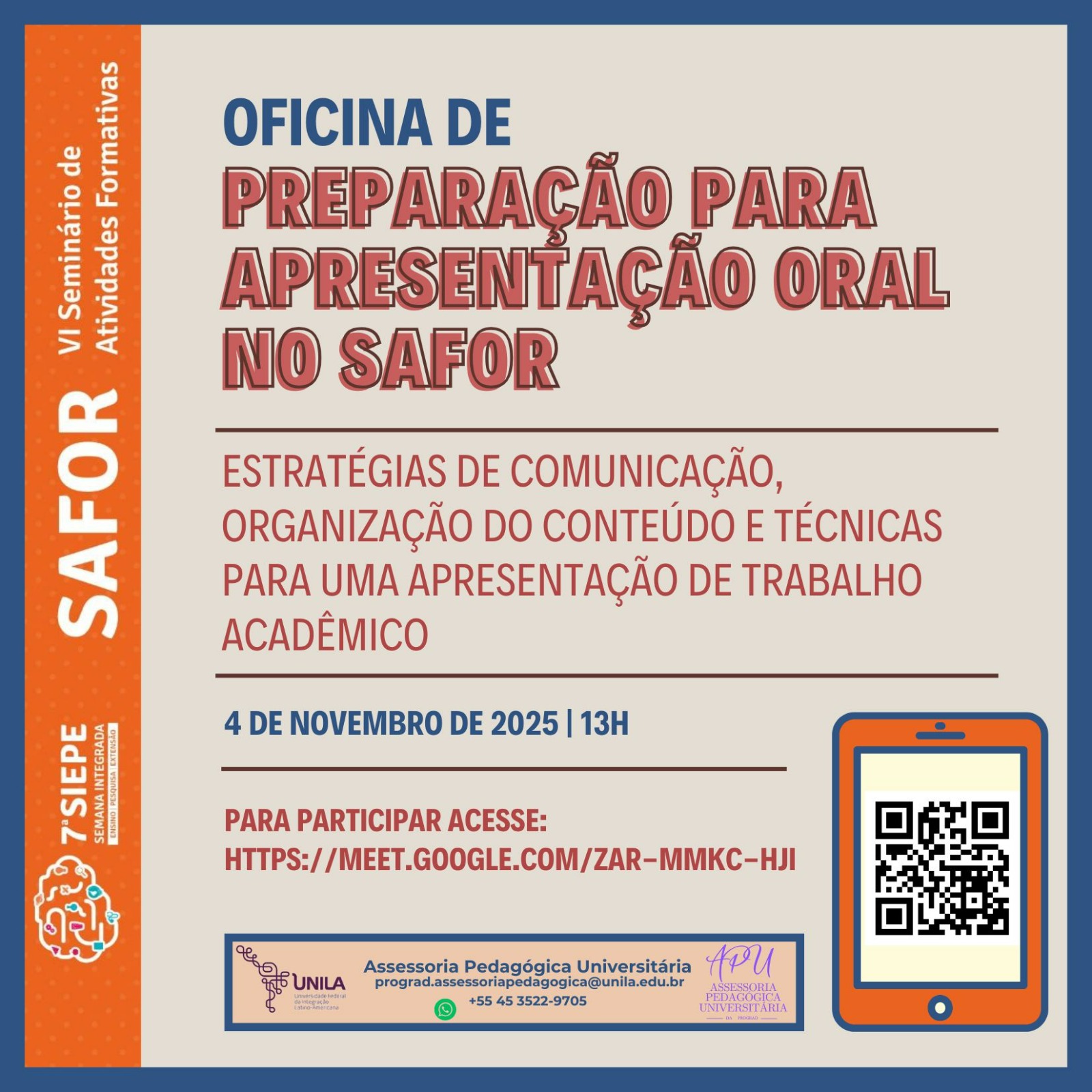 - https://portal.unila.edu.br/eventos/oficina-de-preparacao-para-apresentacao-oral-no-safor