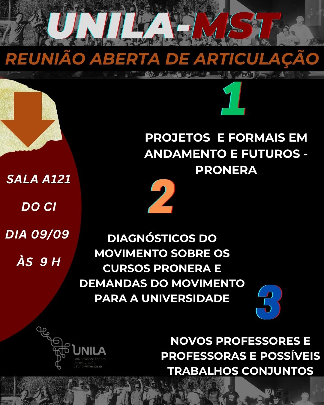 - https://portal.unila.edu.br/eventos/reuniao-aberta-para-articulacao-de-acoes-unila-mst