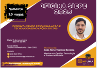 14h às 16h: Oficina SIEPE 2025 – “Desenvolvendo pesquisas-ação e tecnologias/inovação sociais” com João Abner Santos Bezerra – Mestre em Gestão, Tecnologia e Sustentabilidade