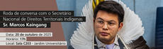Na próxima segunda-feira (20), a Reitoria e a Secretaria de Ações Afirmativas e Equidade (SECAFE) realizam uma roda de conversa com o secretário Nacional de Direitos Territoriais Indígenas, do Ministério dos Povos Indígenas, Marcos Vesolsoquzki Kaingang. Voltada a estudantes indígenas, a atividade ocorre no Jardim Universitário (sala C203), às 17h.