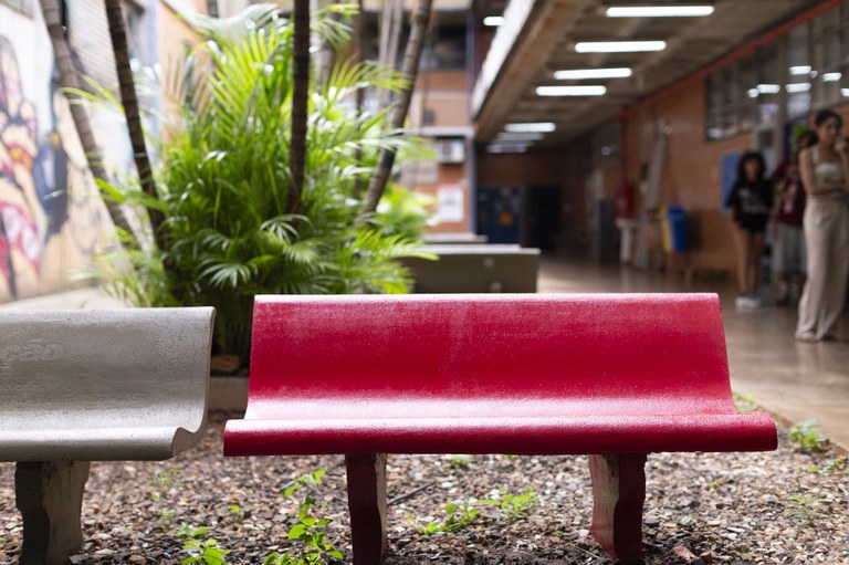Inauguração do Banco Vermelho na Unidade Jardim Universitário busca promover reflexão sobre a vida da mulher e mobilização contra o feminicídio.