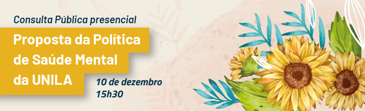 Consulta pública presencial sobre a Política de Saúde Mental da UNILA ocorre nesta quarta-feira (10), às 15h30, no JU. Atividade é aberta a toda a comunidade acadêmica.