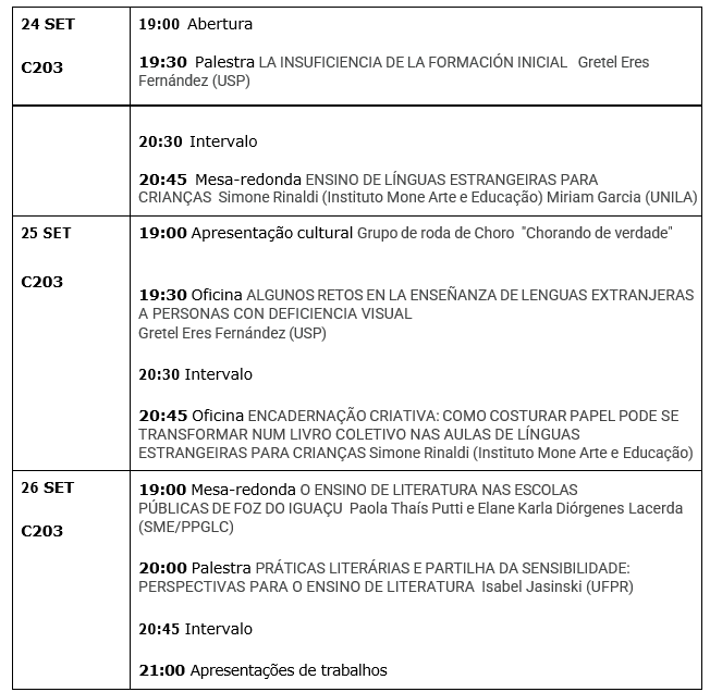 - https://portal.unila.edu.br/institutos/ilaach/eventos/semana-academica-do-curso-de-letras-2013-espanhol-e-portugues-como-linguas-estrangeiras