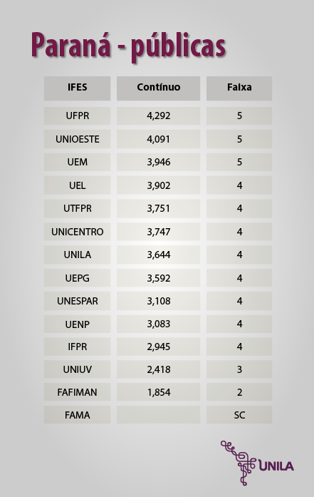 Dados referem-se a 2023, quando foram avaliadas 1.998 instituições públicas e privadas; com o resultado UNILA está entre os 27,7% com desempenho nas faixas 4 e 5