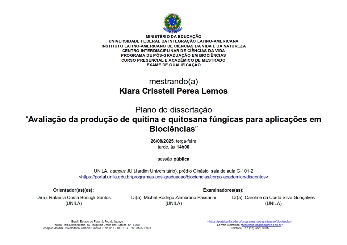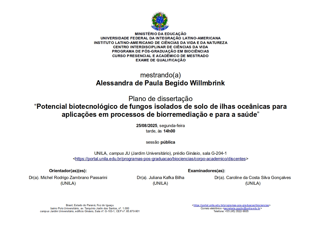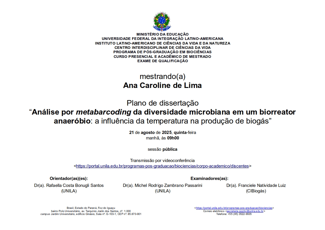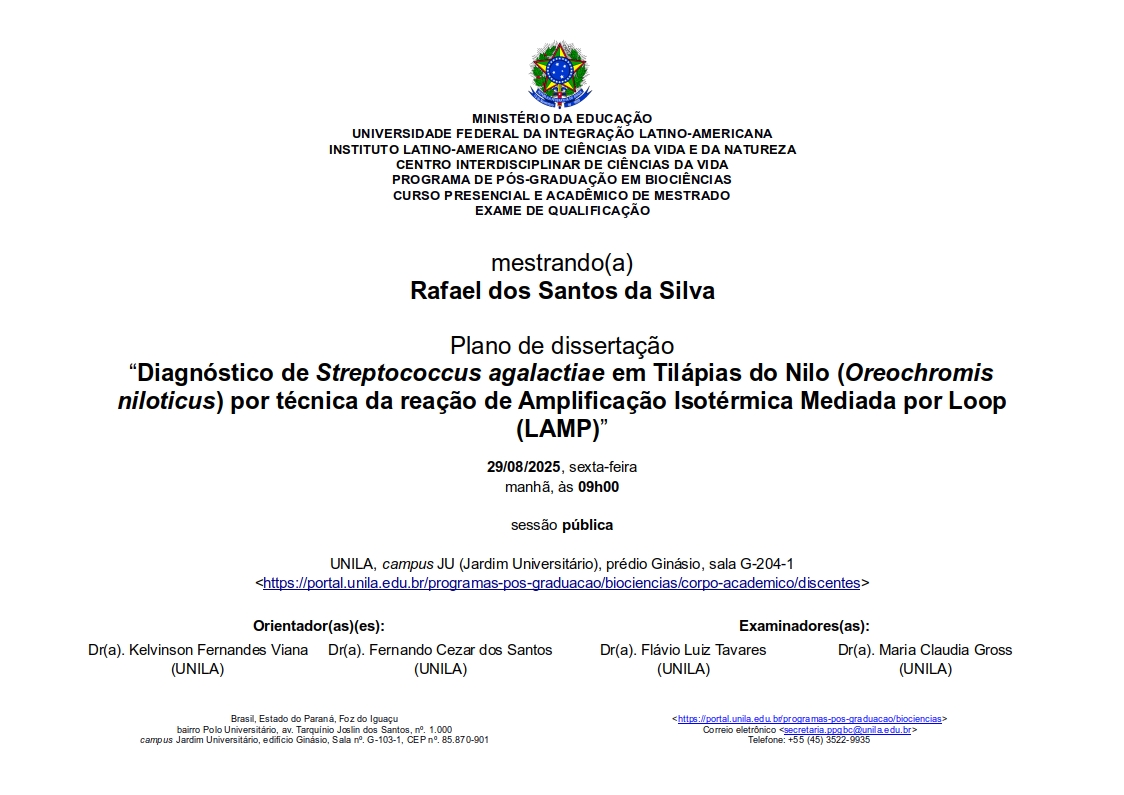 mestrando(a) João Paulo Batista de Souza orientador(a) Dr(a). Gleisson Alisson Pereira de Brito (UNILA) |