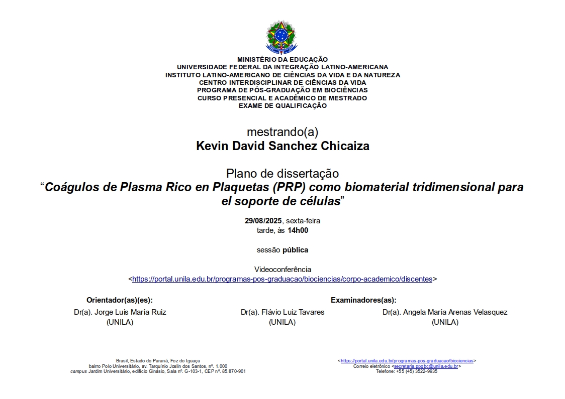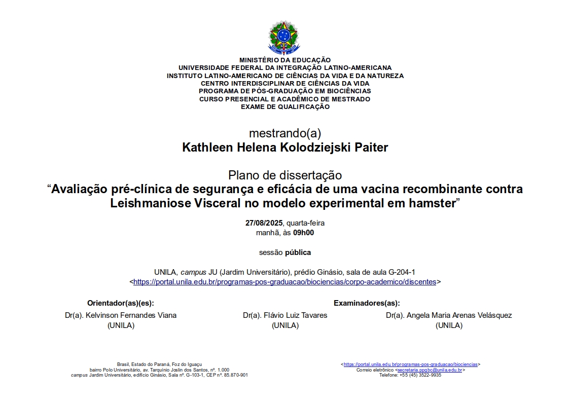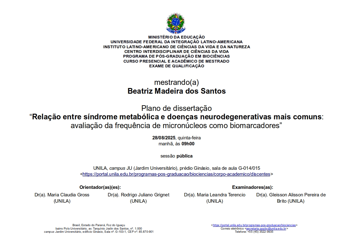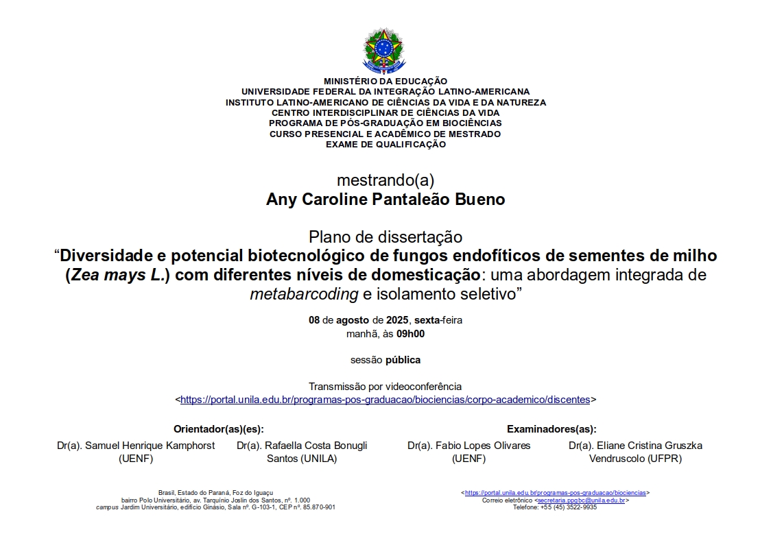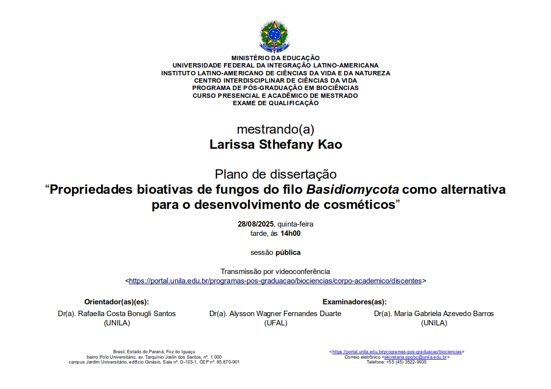 mestrando(a) João Paulo Batista de Souza orientador(a) Dr(a). Gleisson Alisson Pereira de Brito (UNILA) |