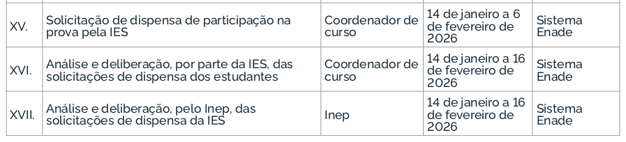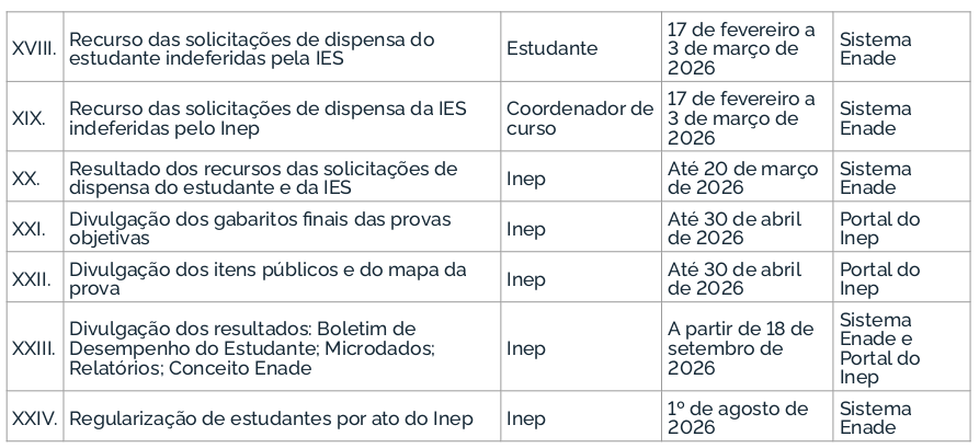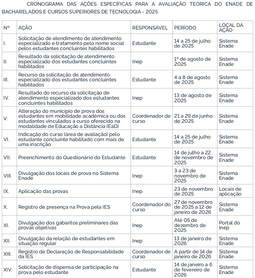 O Enade 2025 cumprirá o seguinte cronograma à Avaliação Teórica, conforme os Editais MEC/Inep nº 57 e 60/2025: