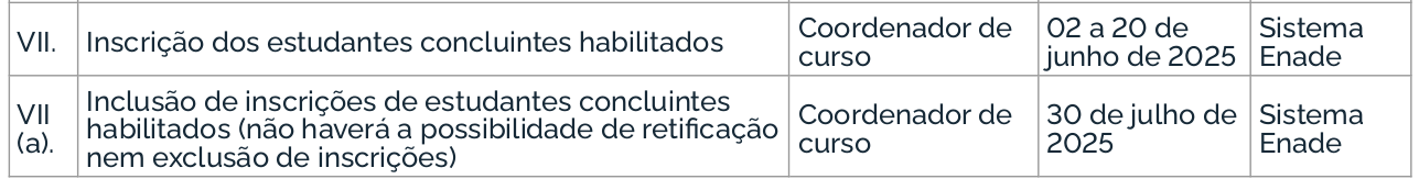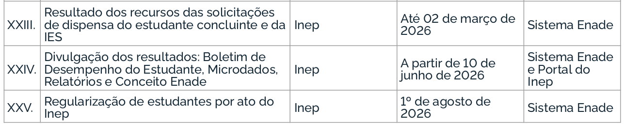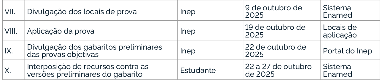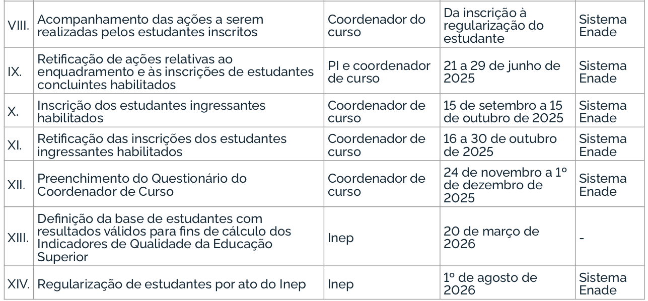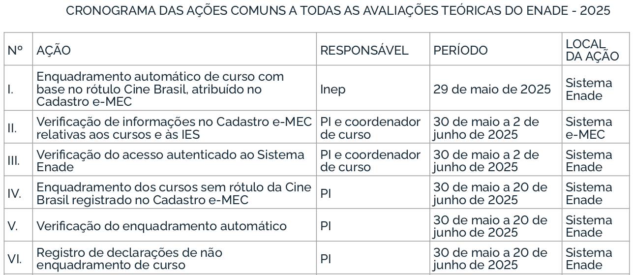 O Enade 2025 cumprirá o seguinte cronograma à Avaliação Teórica, conforme o Edital MEC/Inep nº 57/2025: