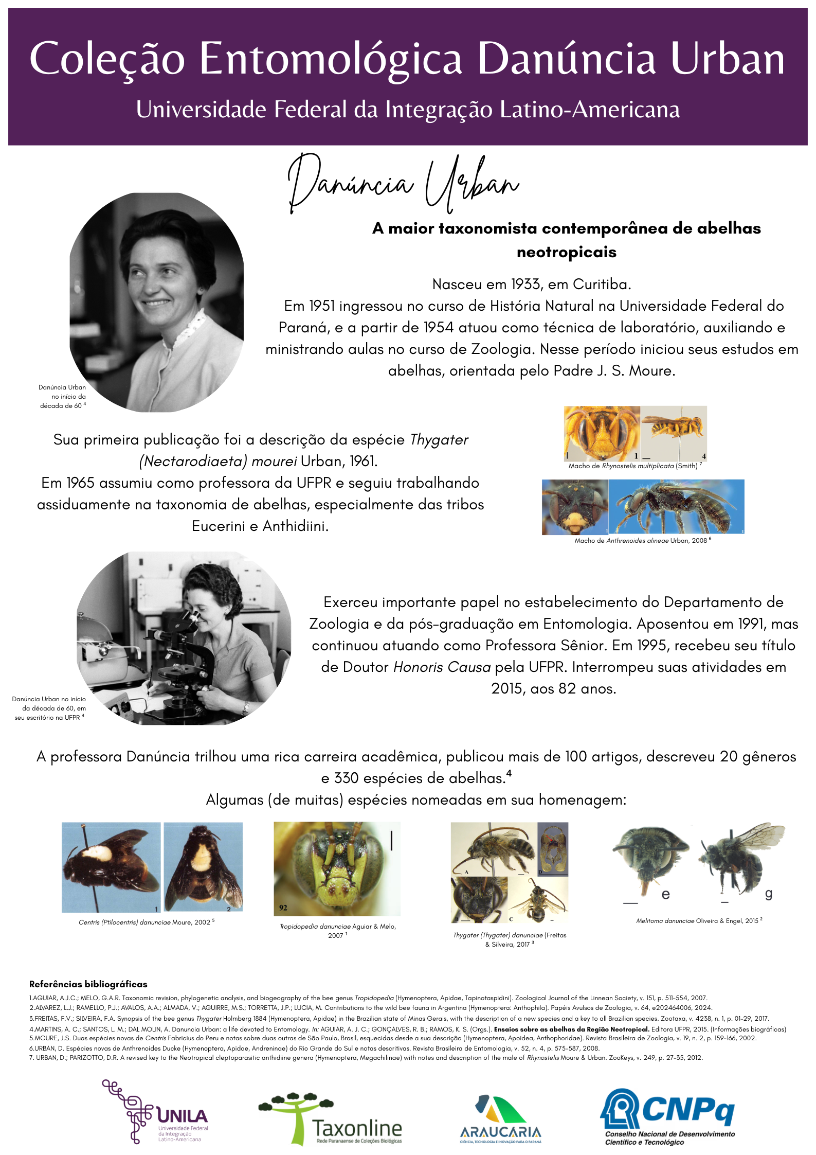 A Coleção Entomológica Danúncia Urban (CEDU-UNILA) é um espaço multiusuário de pesquisa e preservação de acervo entomológico, focado na biodiversidade neotropical, com ênfase da fauna regional da tríplice fronteira entre Brasil, Argentina e Paraguai.