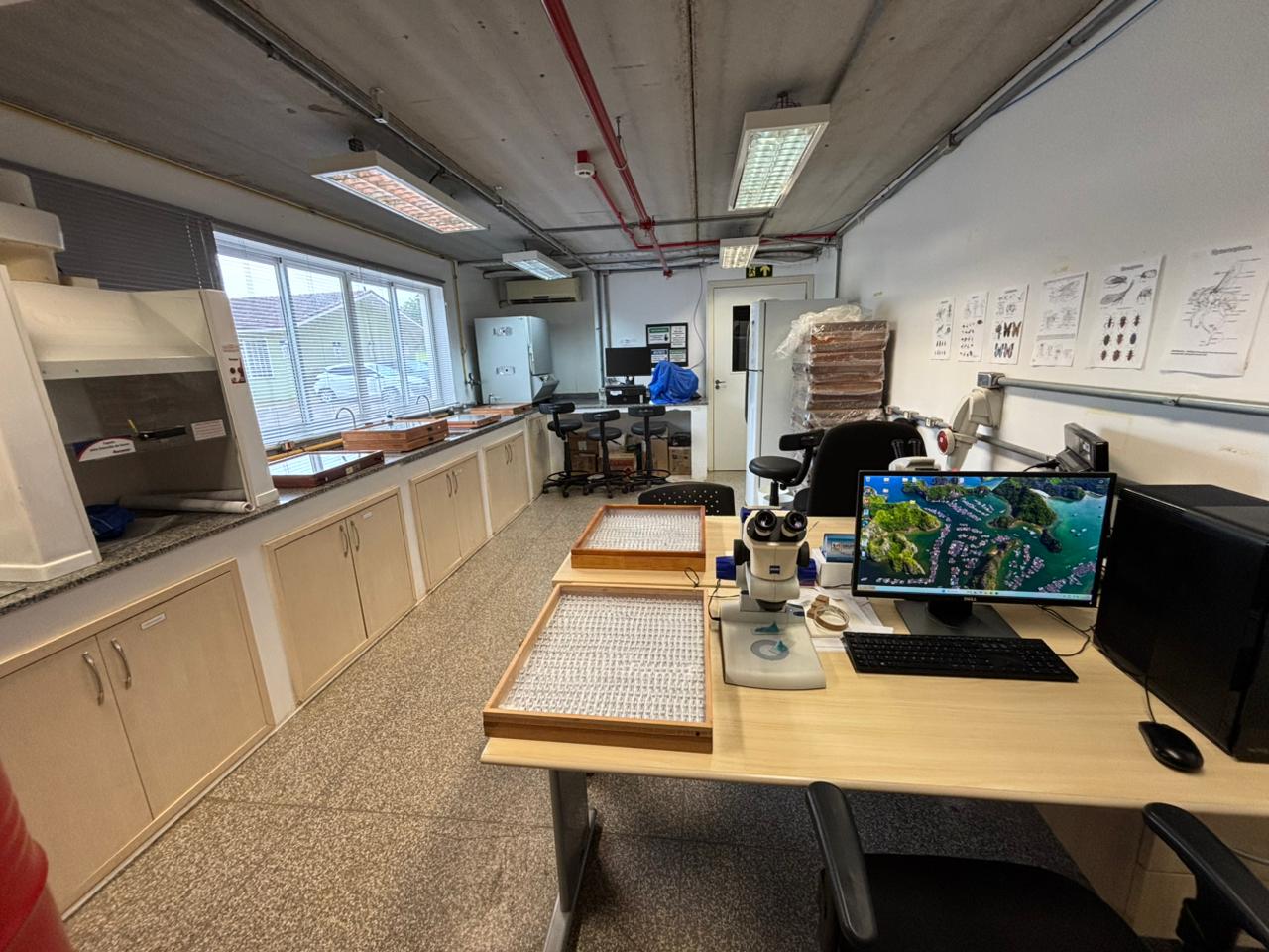 Localizada em Foz do Iguaçu-PR, atualmente está abrigada em duas salas no conjunto de Laboratórios Multiusuários Engenheira Enedina Alves Marques, Edifício das Águas, situado no Parque Tecnológico de Itaipu, em parceria entre UNILA, Itaipu Binacional e Parquetec. A sala de triagem e preparação de material conta com lupas e estufa para organização e estudo do material.